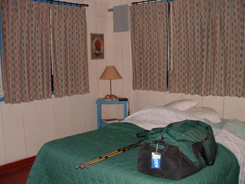 Inside my cabin...very rustic, but the bed felt good after all that hiking.