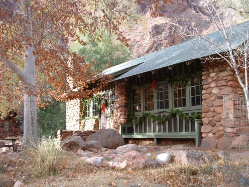 We made it. Here's my Christmas decorated cabin at the Phantom Ranch.