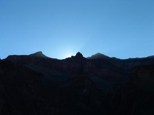 Heading out - we started on the trail in the dark - here's the first sign of the sun.