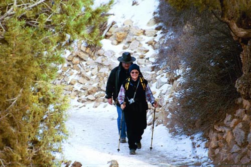 On the trail - can you see us? We started our hike on the Bright Angel Trail with